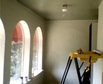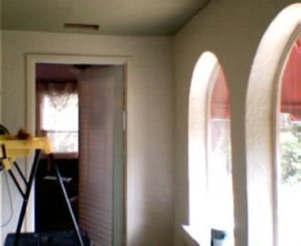 The above photos are of an enclosed porch in an older (1925) Spanish-Mediteranean style home. The resulting room is about 7' X 15' and was used primarily as a storage area. However, the beautiful arched windows seemed to call for more ambitious use of the space, so it was decided to make this into a cozy office retreat.